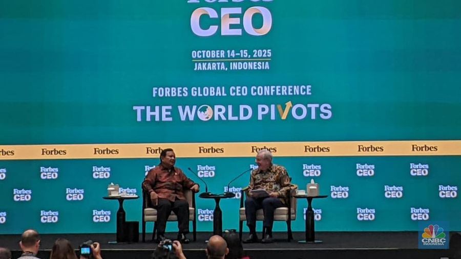 Jakarta, CNBC Indonesia - Presiden Prabowo Subianto melakukan dialog dengan CEO Forbes Steve Forbes dalam acara Forbes Global CEO Conference 2025 di The St. Regist, Jakarta, Rabu (15/10/2025). Dalam dialog itu, Prabowo mengungkapkan arahan yang diberikan kepada CEO Danantara Indonesia Rosan Roeslani terkait jumlah perusahaan pelat merah.